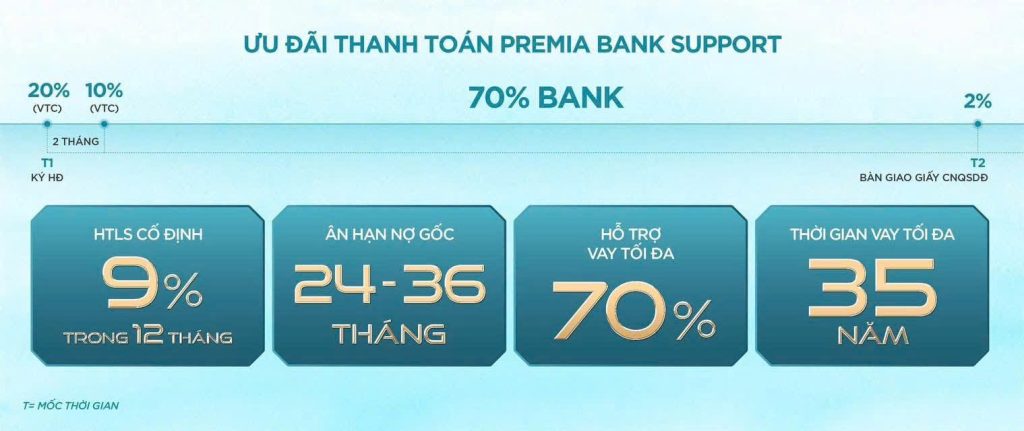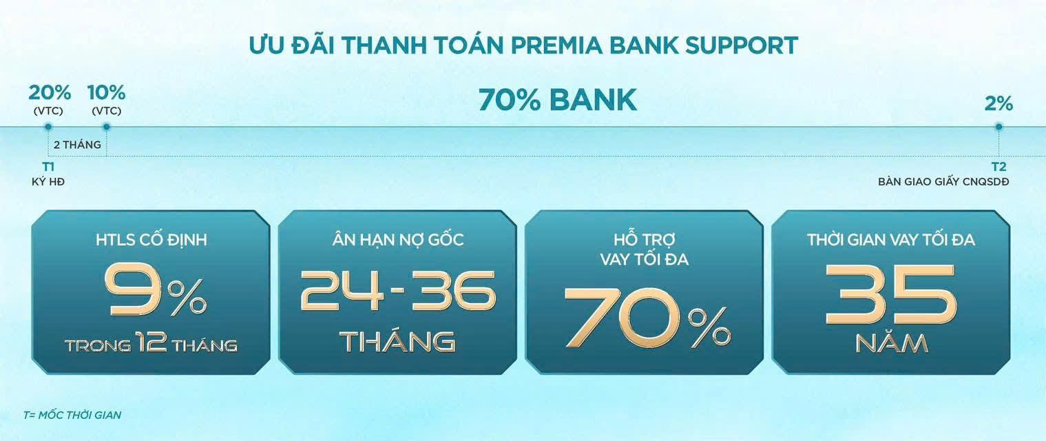Hỗ trợ ngân hàng: Vay đến 70% trong 35 năm, lãi suất cố định 9% trong năm đầu, ân hạn nợ gốc tới 36 tháng.