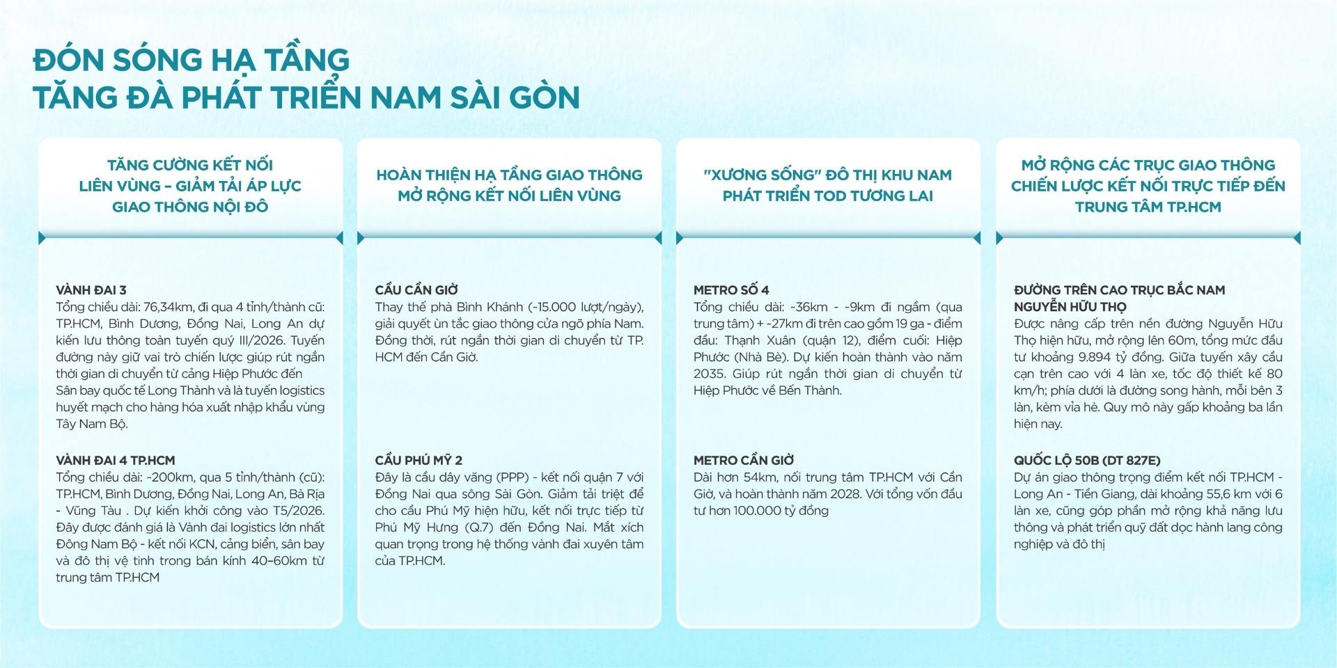 Hạ tầng tương lai: Thừa hưởng lợi ích từ cao tốc Bến Lức – Long Thành, đường Vành Đai 4 và tuyến Metro số 4.