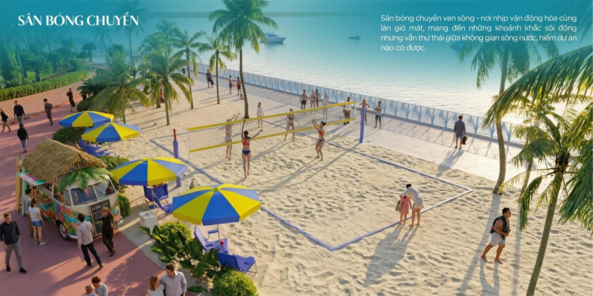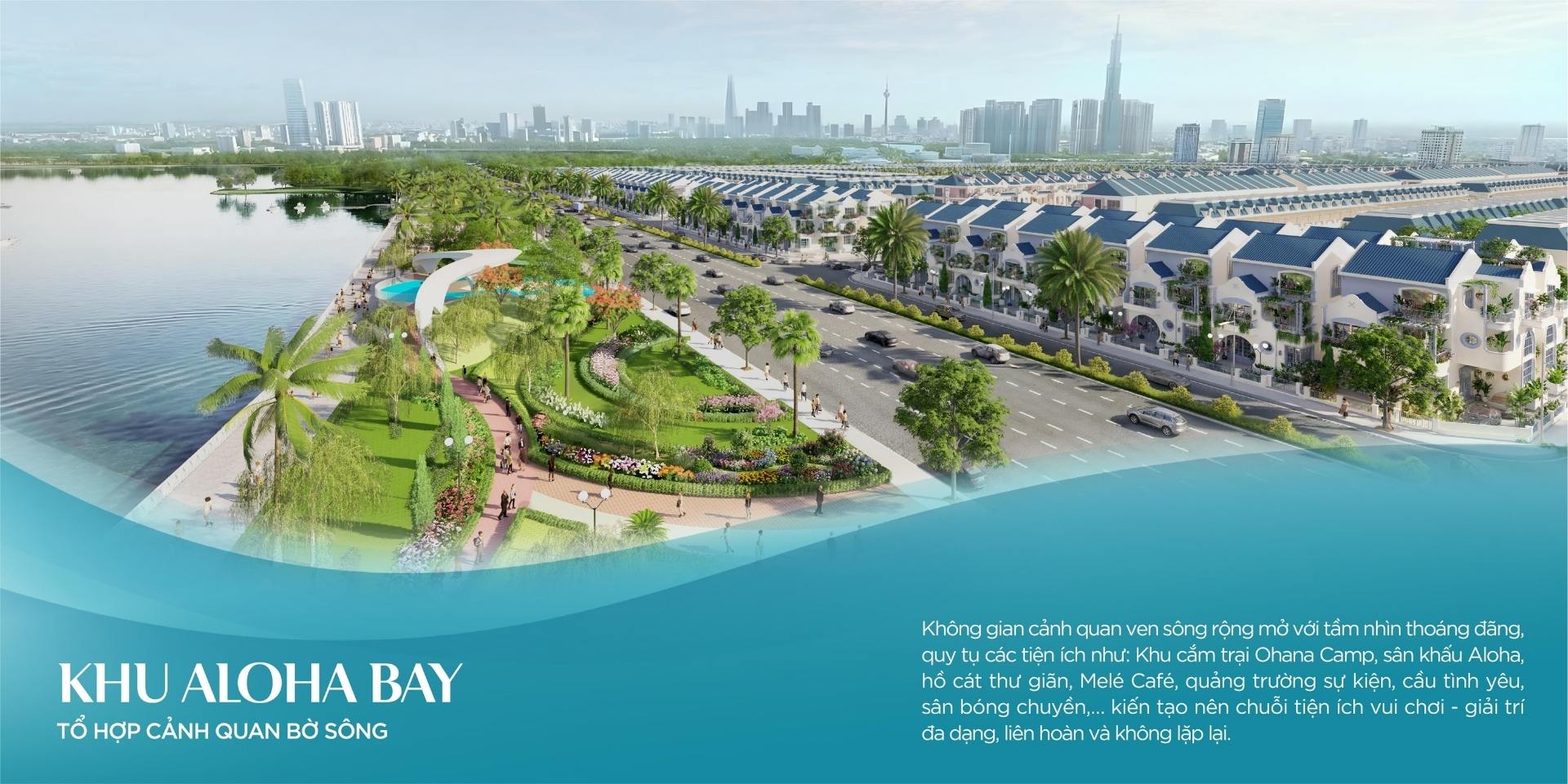 Công viên ven sông: Tận dụng lợi thế tiếp giáp sông Soài Rạp để xây dựng mảng xanh lớn, đường dạo bộ và các khu tiểu cảnh.