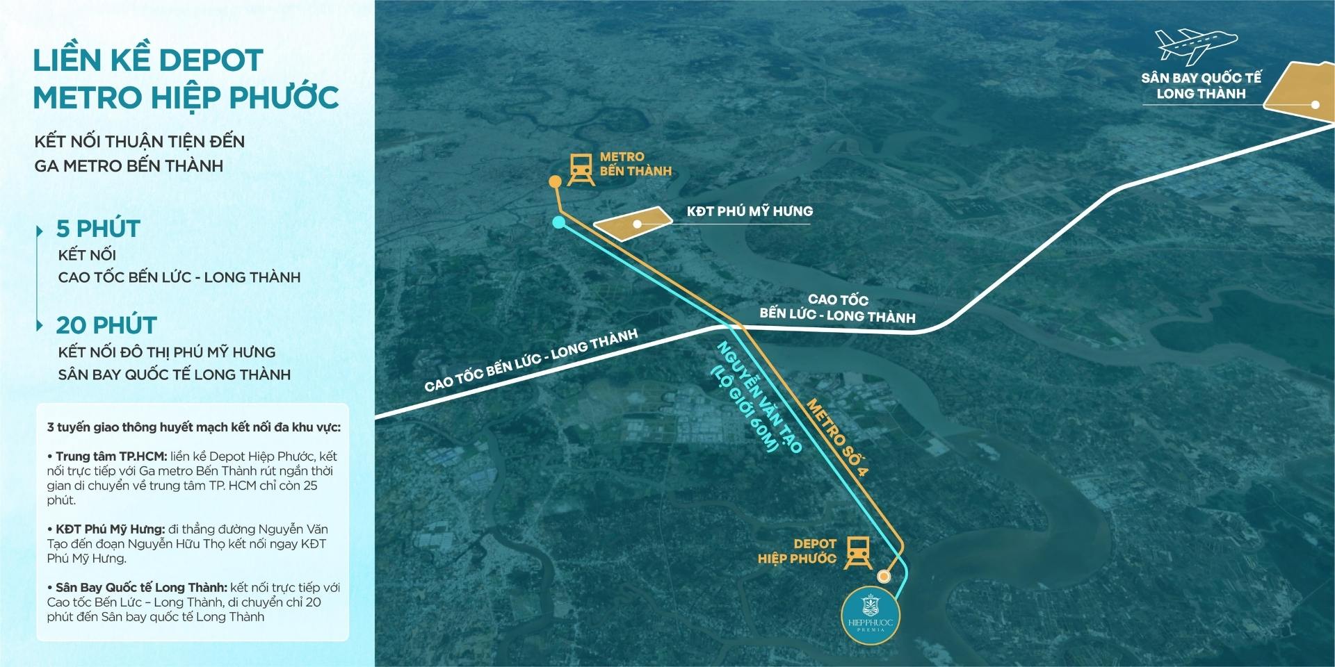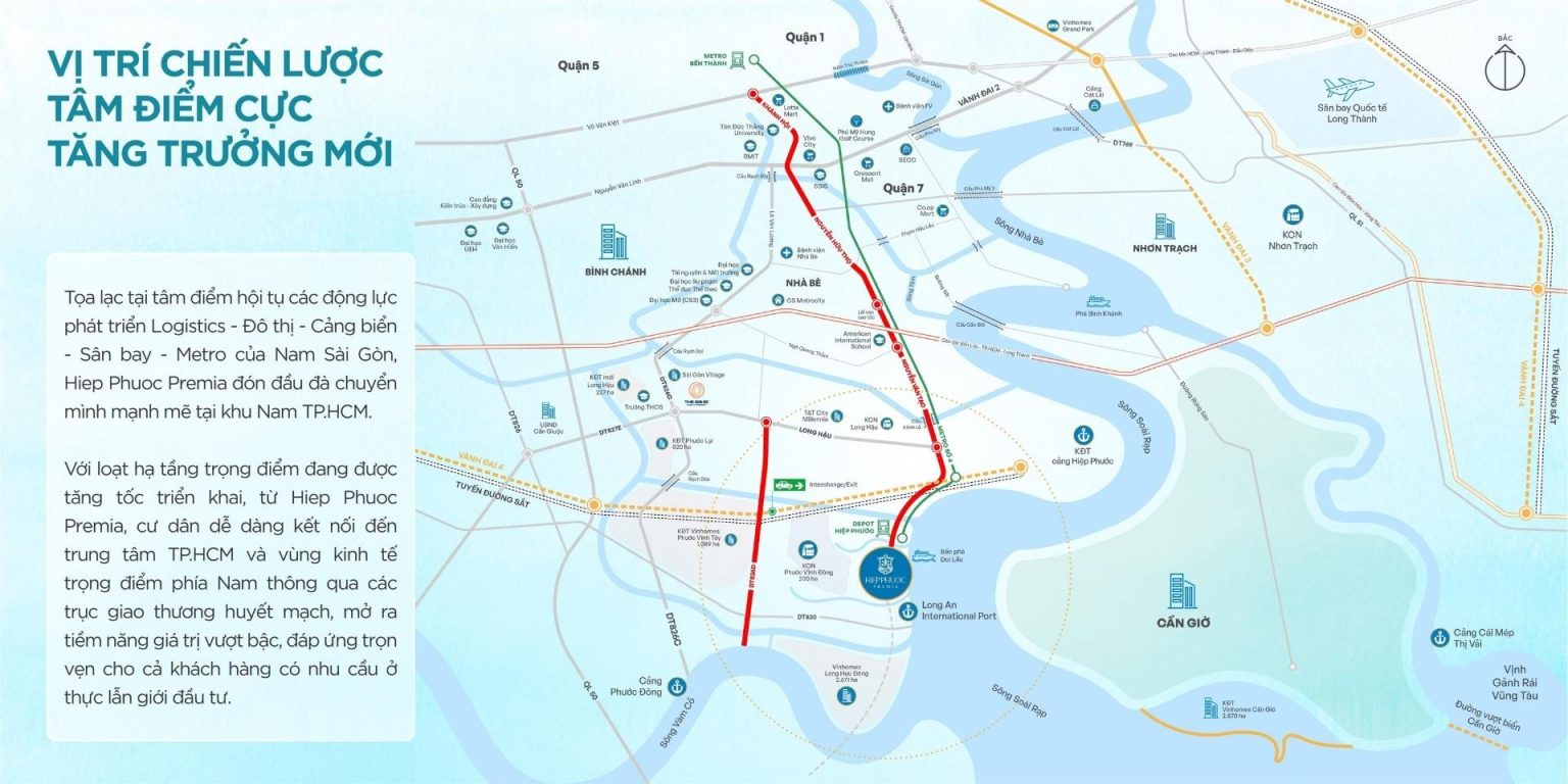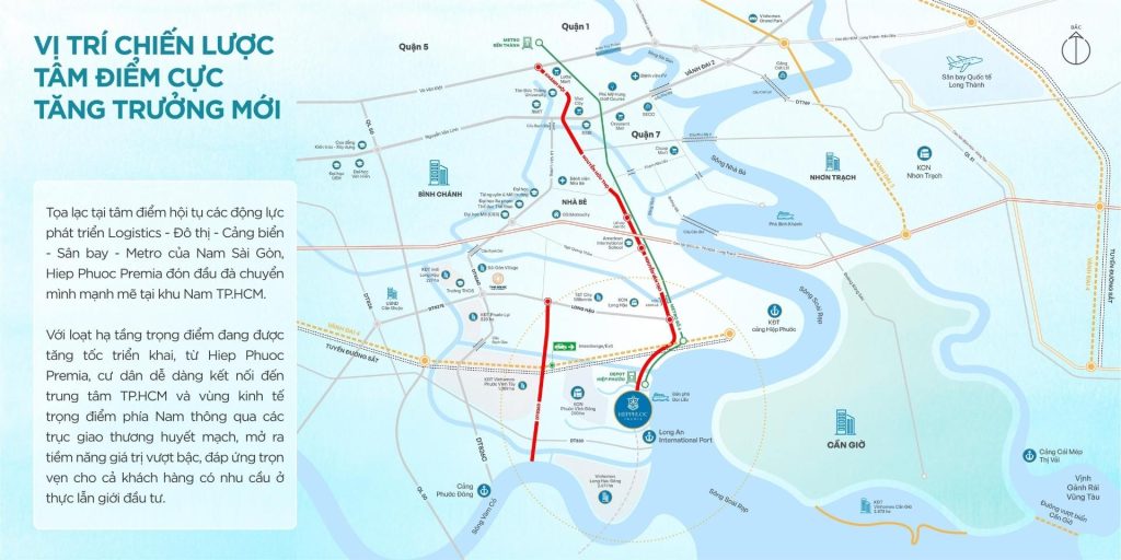 Hiệp Phước Premia sở hữu vị trí đắc địa tại khu vực hạ tầng đang bùng nổ mạnh mẽ. Dự án nằm sát vách huyện Nhà Bè, kết nối trực tiếp với trục đường huyết mạch Nguyễn Văn Tạo.