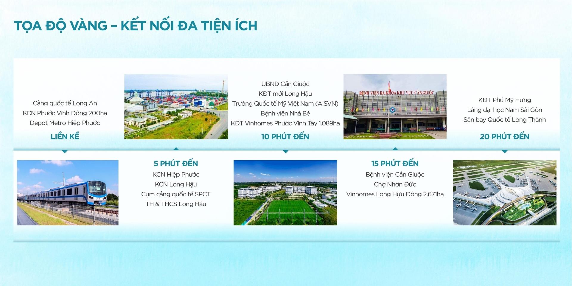 Kết nối vùng: Chỉ mất 15-20 phút di chuyển đến khu đô thị Phú Mỹ Hưng và các quận trung tâm TP.HCM.